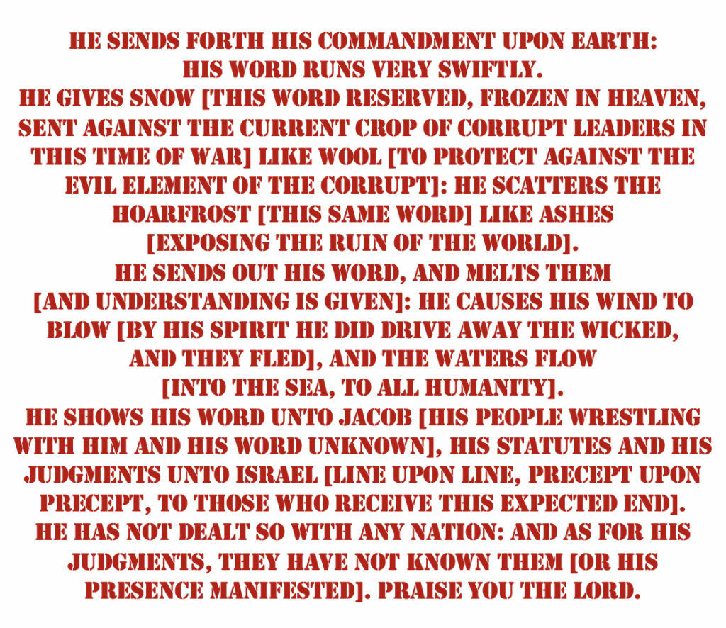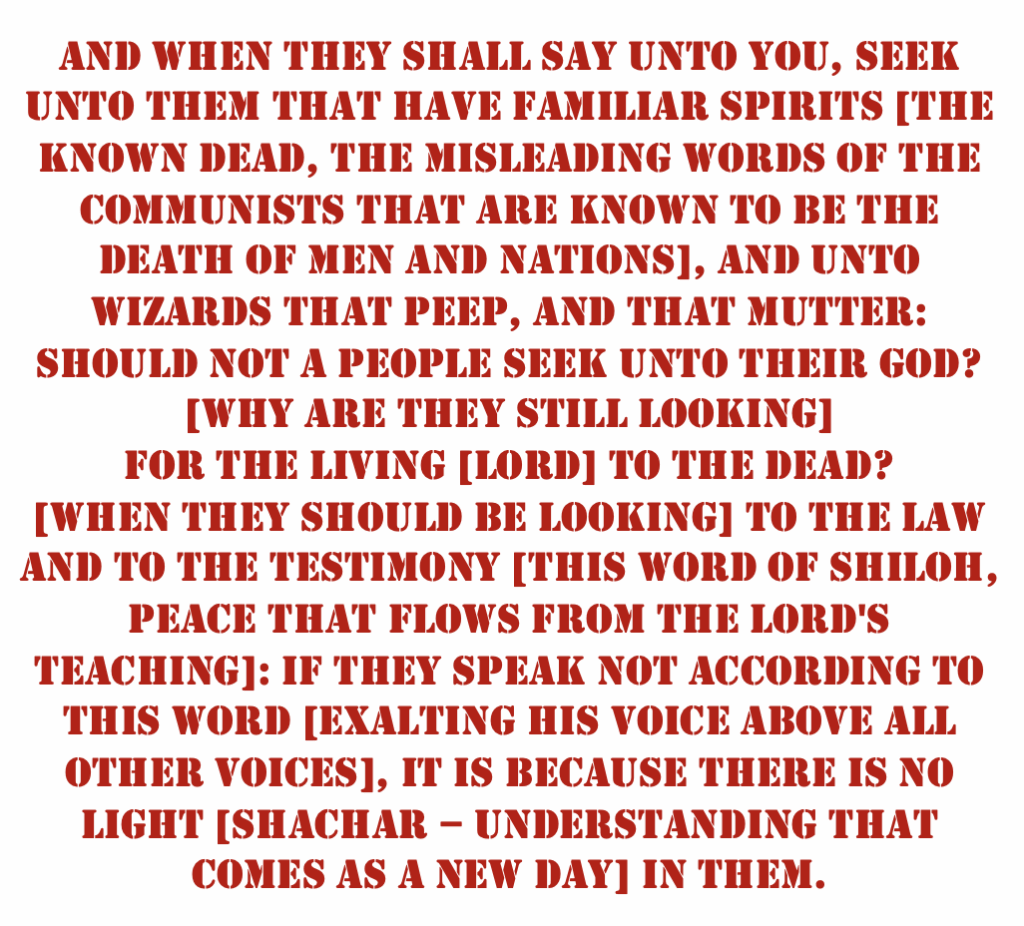 (Pardon my once again necessarily digressing. I heard part of Alex Jones yesterday, interviewing some self-proclaimed prophet. They, together, quickly descended into Satanic quoting bits and pieces of the LORD’s word, while vehemently demanding, based upon their opinions of what He should do, that He must do it based on their calls.
